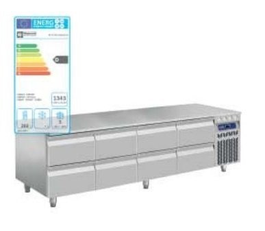 Soubassement Réfrigéré | INOX | 8 x 1/2 tiroirs GN 1/1-h 100 mm | R134A | 2000x700x630/650(h)mm | DELUXE