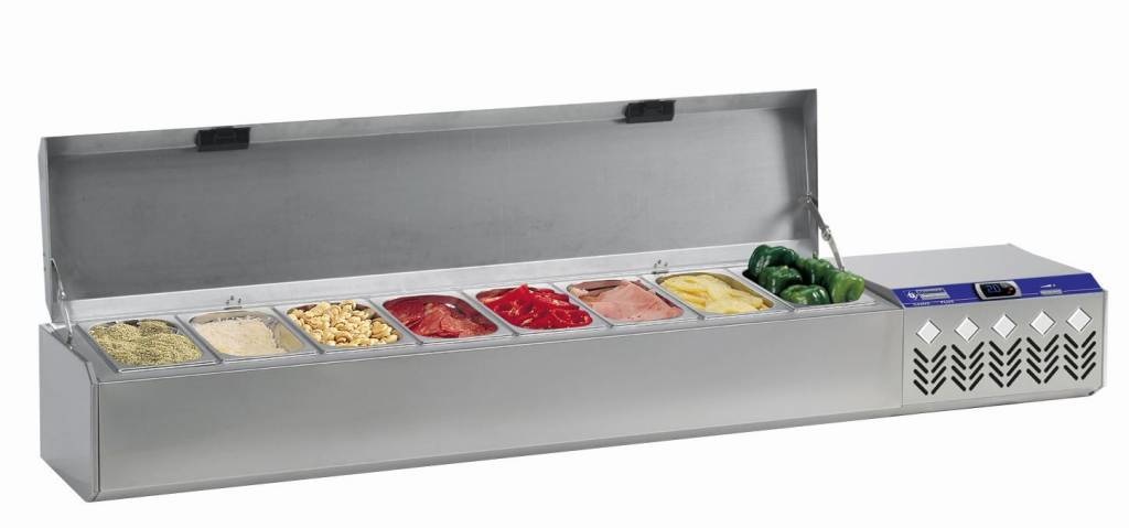 Structure réfrigérée | 8x 1/4 GN of 4x 1/2 GN | Couvercle INOX | 175,5x32,4x38,5/51,5 cm