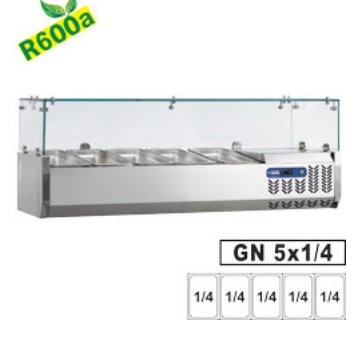 Structure réfrigérée | avec vitre | 5x 1/4 GN - 150 mm| 120x34xh22,5/43,5 cm