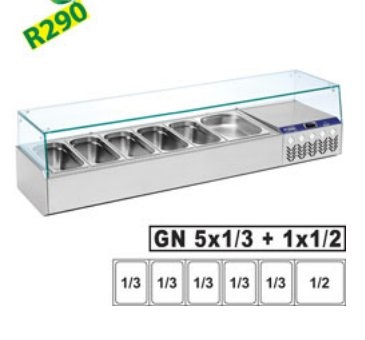 Structure réfrigérée | avec vitre droite | 5x 1/3 + 1x 1/2 GN | 160x38,4x(H)38,7 cm