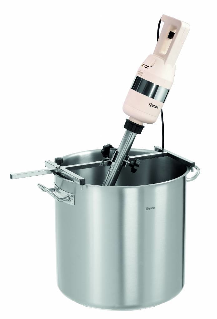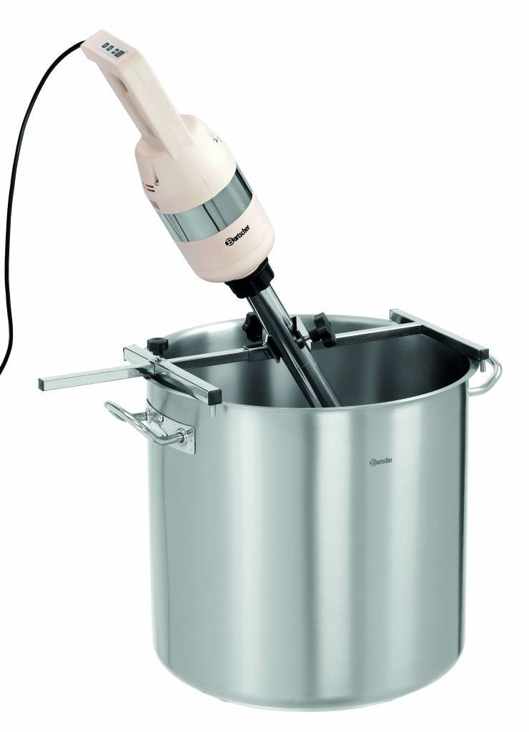 Grande économie de temps et plus de flexibilité dans la cuisine – Avec l’aide du support pour mixeur plongeant, les aliments peuvent être hachés, écrasés et chauffés en remuant.