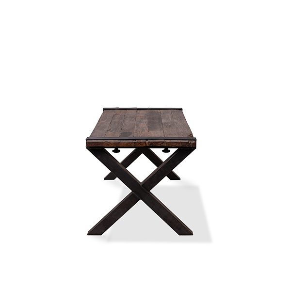 Table Basse | Modèle Old Dutch | Cadre en X en Acier | Plateau en Bois | 2200x800x(h)760mm
