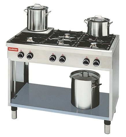 Table de Cuisson 650 Modulaire - Gaz - 6 Brûleurs avec Châssis Ouvert - 110x65x(h)85cm - 25,8 kW