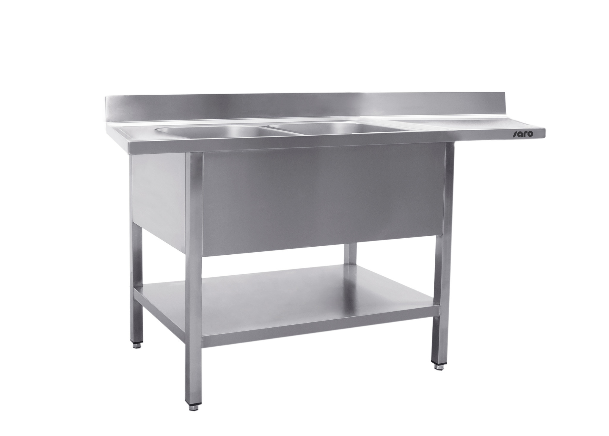 Table de Rinçage + Etagère Basse Inox | Rebord | 2 éviers à gauche| Table de Travail flottant | Modèle soudé | 600mm de Profondeur | Disponible en 3 Longueurs