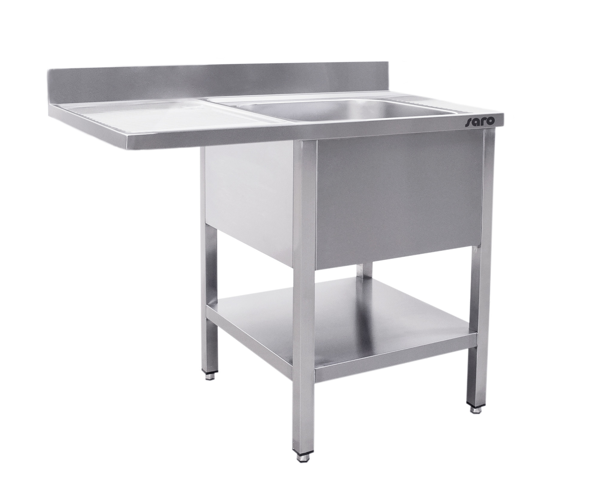 Table de Rinçage + Etagère Basse Inox | Rebord | Évier droit | Table de Travail flottant | Modèle soudé | 700mm de Profondeur | Disponible en 2 Longueurs