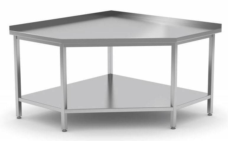 Table de Travail d'Angle | INOX | Etagère Basse | Rebord | (l)700-1000mm | 600-700mm(p)