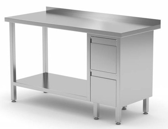 Table de Travail | INOX | 2 Tiroirs | Etagère Basse | Rebord | 800(l)x600(p)mm | Choix de 12 Largeurs