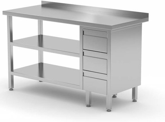 Table de Travail | INOX | 3 Tiroirs | 2x Etagère Basse | 800(l)x600(p)mm | Choix de 12 Largeurs