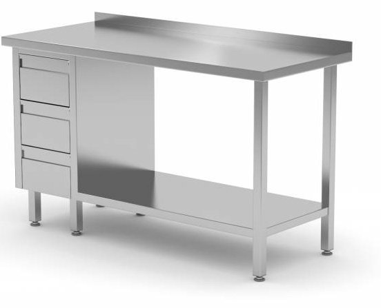 Table de Travail | INOX | 3 Tiroirs (Gauche) | Etagère Basse | Rebord | 800(l)x700(p)mm | Choix de 12 Largeurs