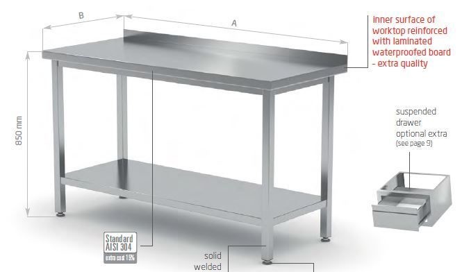 Table de Travail | Inox | Etagère Basse | Rebord | HEAVY DUTY | 400(l)x600(p)mm| Choix de 16 Largeurs