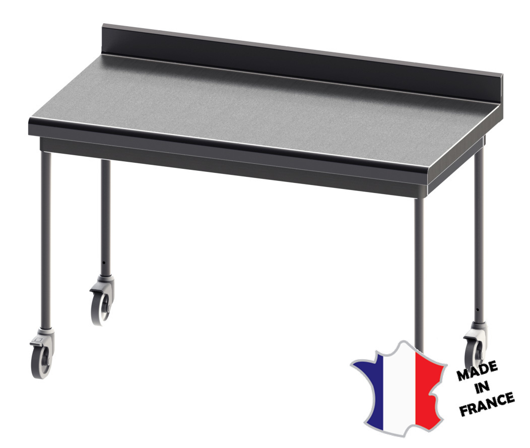 Table démontable rayonnee | Inox | à dosseret | pieds ronds | 700(l)x700x900mm | sur roulettes polyamide