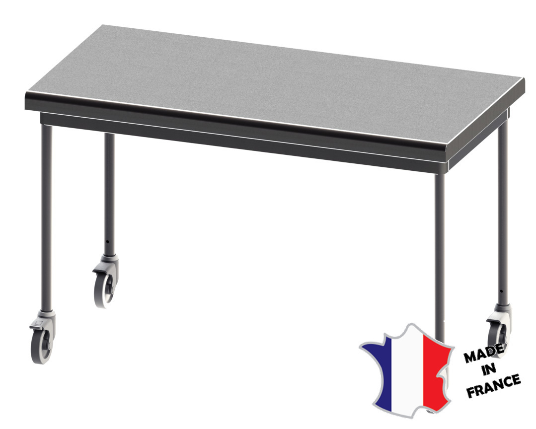 - Pieds en tube inox AISI 304L Ø38 sur 4 roulettes inox dont 2 à frein