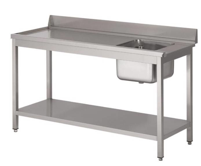Table d'entrée Lave-Vaisselle INOX | Bac à Droite | Dosseret et Etagere Basse | 1400x700x850(h)mm