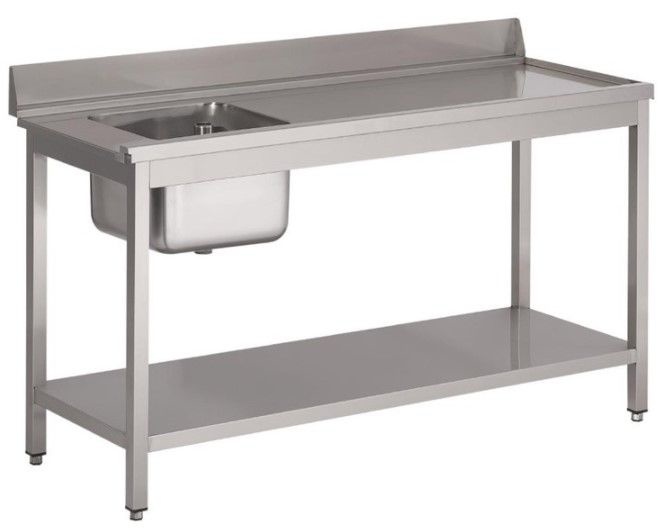 Table d'entrée Lave-Vaisselle INOX | Bac à Gauche | Dosseret et Etagere Basse | 1000x700x850(h)mm