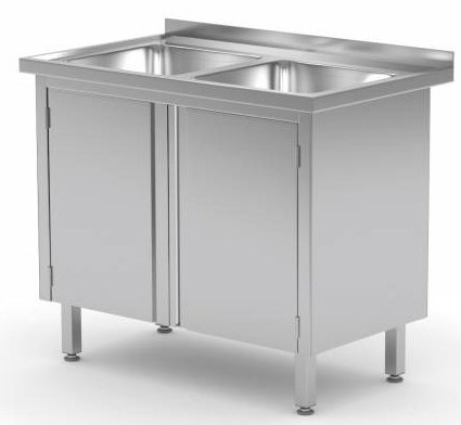 Table Evier | INOX | 2 Eviers | 2 Portes Battantes | 600(l)x600(p)mm | Choix de 2 Largeurs