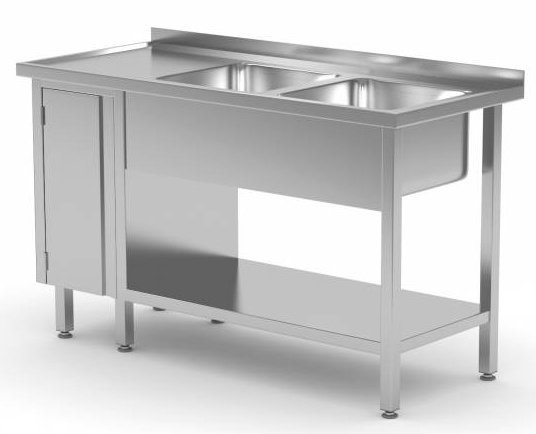 Table Evier | INOX | 2 Eviers XXL | 1 Porte Battante | 1400(l)x700(p)mm | Choix de 7 Largeurs