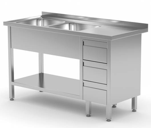 Table Evier | INOX | 2 Eviers XXL | 3 Egouttoirs | 1400(l)x700(p)mm | Choix de 7 Largeurs