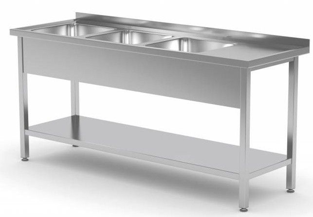 Table Evier XXL | INOX | 3 Eviers | Etagère Basse | 1500(l)x600(p)mm | Choix de 5 Largeurs