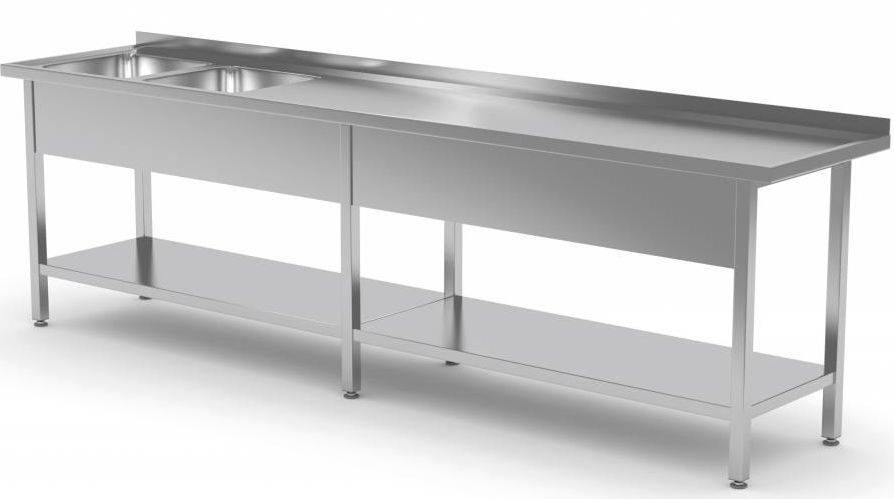 Table Evier XXXL | INOX | 2 Eviers XXL | Etagère Basse | 2000(l)x700(p)mm | Choix de 9 Largeurs