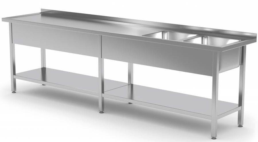 Table Evier XXXL | INOX | 2 Eviers XXL | Etagère Basse | 2000(l)x700(p)mm | Choix de 9 Largeurs
