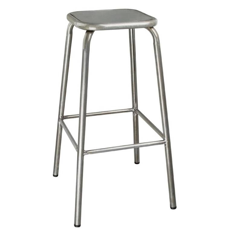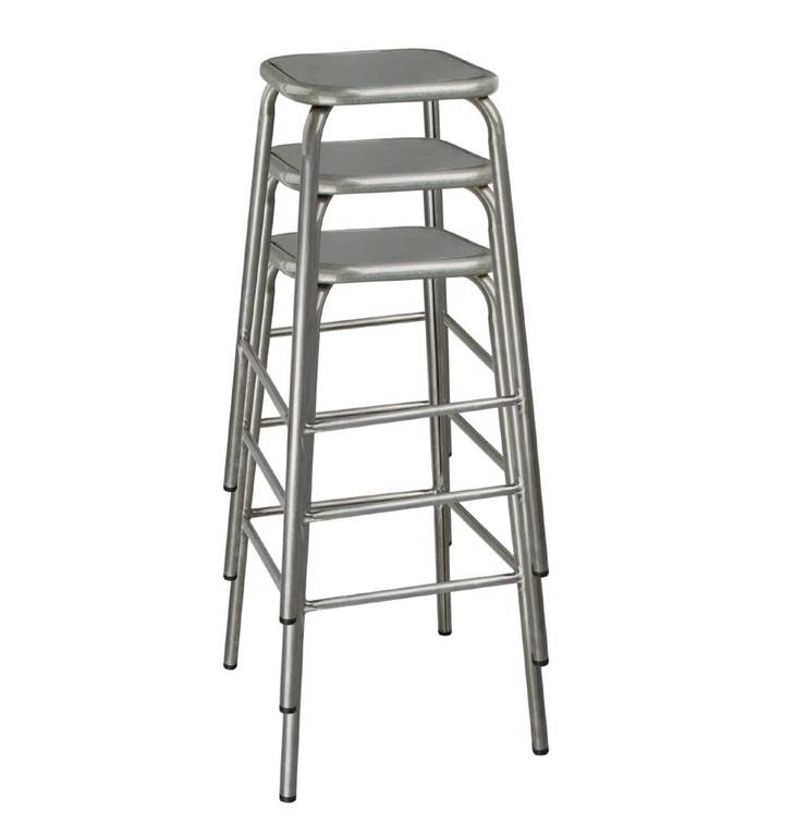 Tabouret Haut | Gris Métallisé | avec Assise en Métal | Bolero | lot de 12