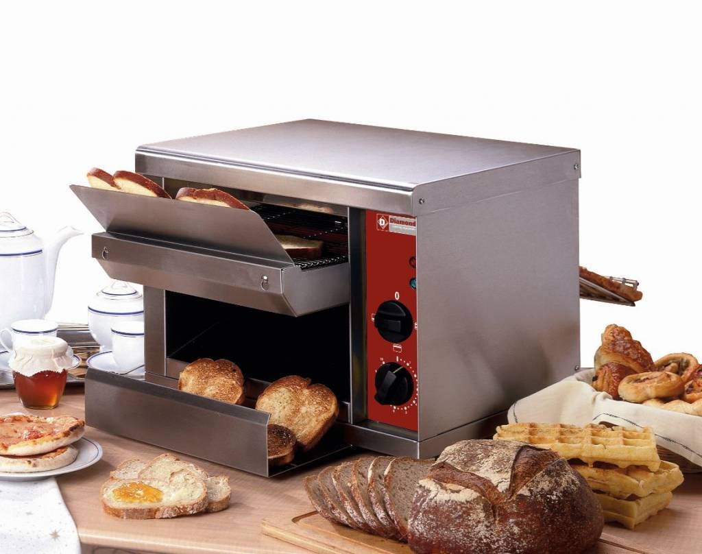 Production 300 à 540 toasts/heure, sans préchauffage.2 rampes de chauffe, chacune avec 4 tubes quartz.