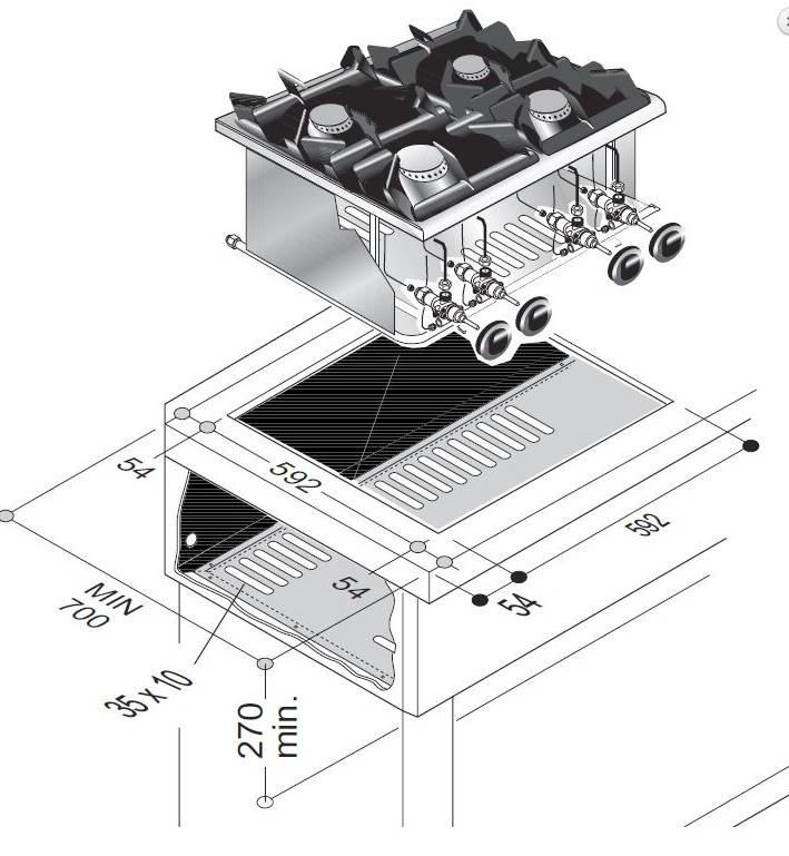 Unité de Cuisson | Cuisinière à Gaz 4 Brûleurs | 14 kW | 600x600x(H)270mm