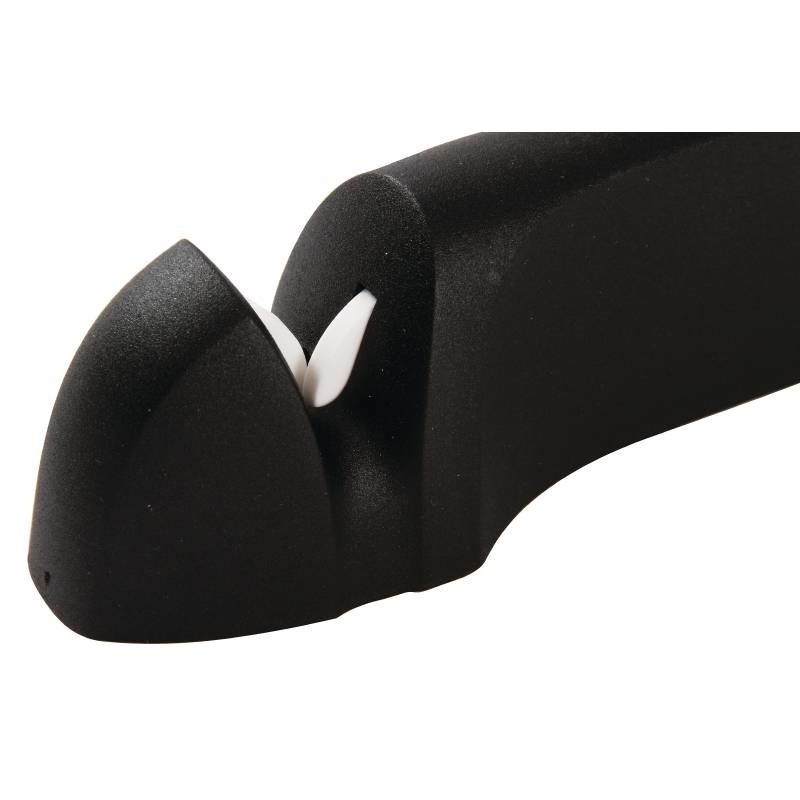 Alternative facile à utiliser pour aiguiser les couteaux. Les meules en céramique fournissent un aiguisage de précision pour tous les couteaux à lame droite. Corps en plastique pour une prise en main sûre et confortable pendant l'utilisation.