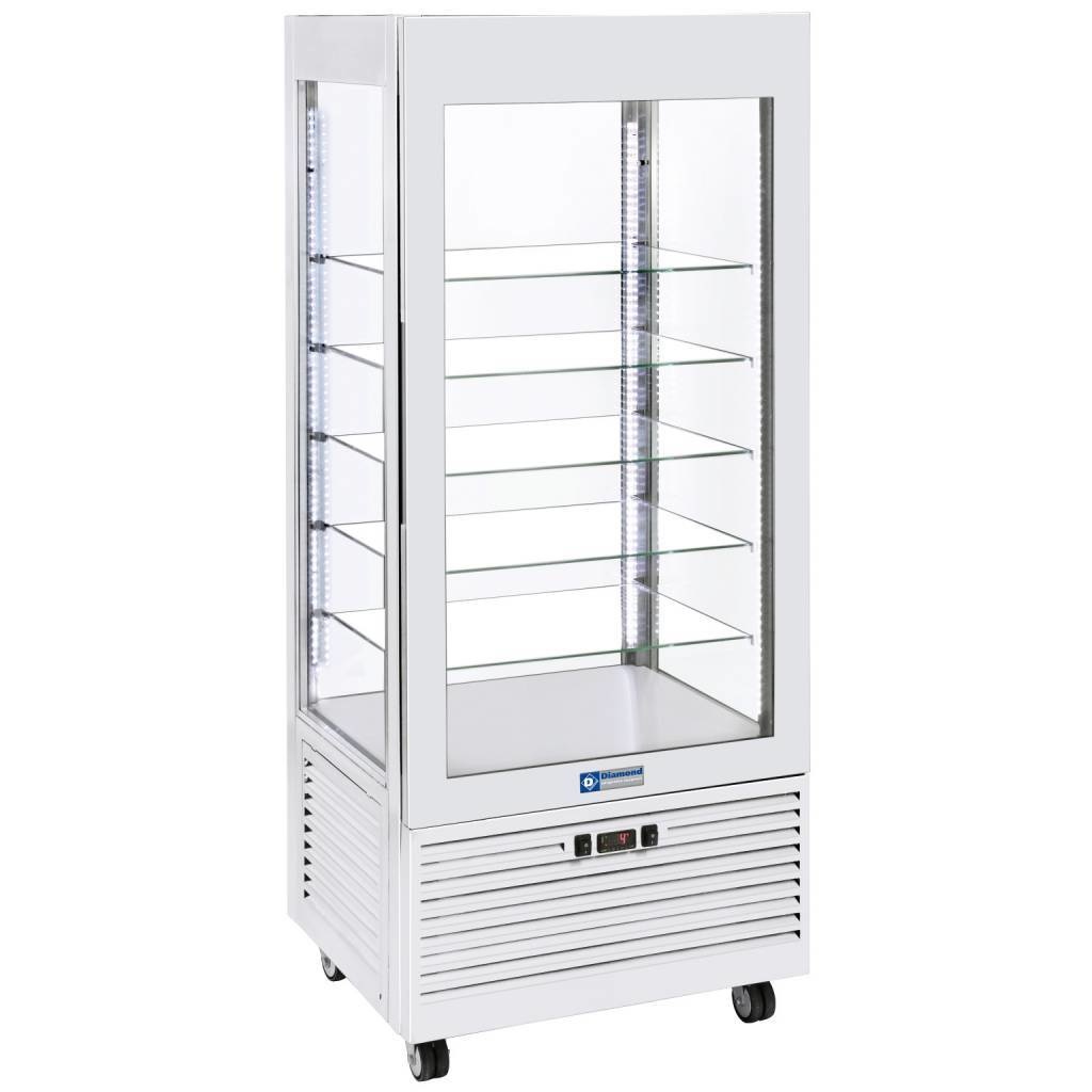 Vitrine 4 faces | T° positive | 5 étagères en verre | Ventilée | 480 Litres | BLANCHE | 800x630x(h)1850mm