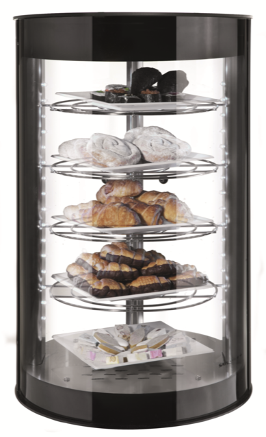 Conception circulaire verticale et une armoire révolutionnaire qui offre un produit 360º en version neutre, parfait pour l'affichage des aliments.