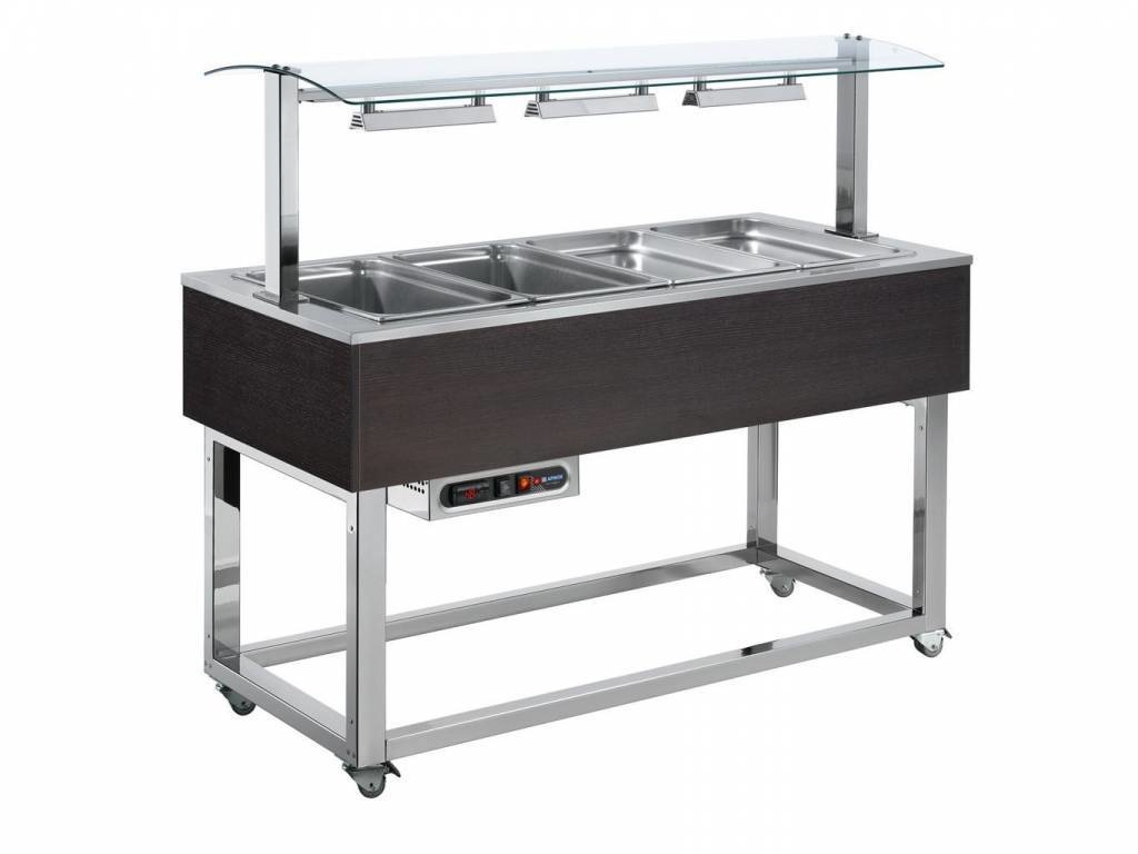 Buffet Chauffant | Bain Marie | 3x 1/1 GN | Afinox | Couleur Wengé | 116,9x65x(H)132,6cm