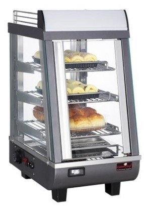 avant et arrière des portes coulissantes (petit modèle porte normale), châssis en acier inoxydable, thermostat, (+30°C/+90°C), affichage de la température, des grilles réglables, éclairage LED intérieur et top box de lumière, étage dessus pour stockage assiettes