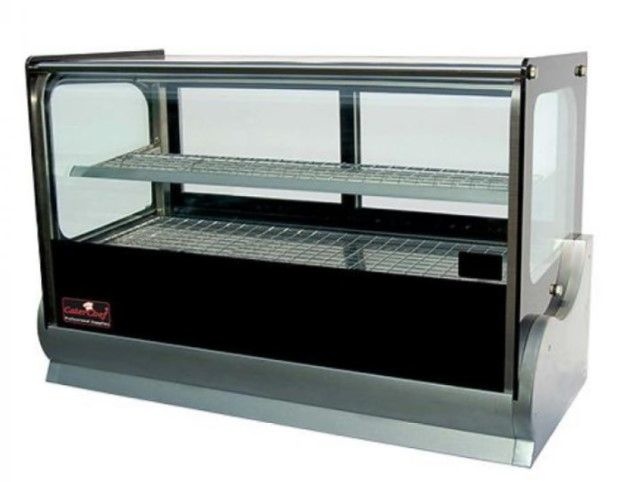 Vitrine Chauffante Noire | 2 Verres Coulissantes | Éclairage | 900x540x790(h)mm