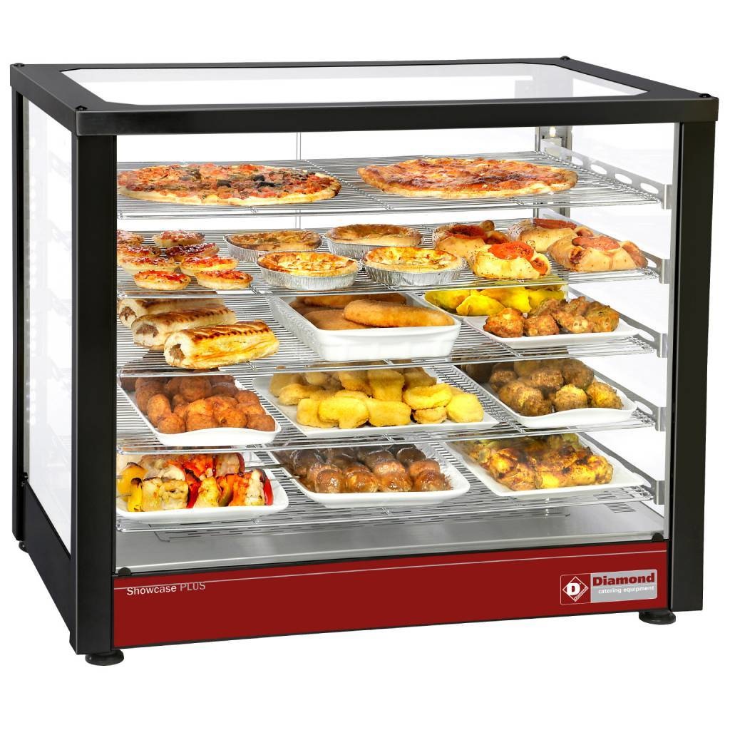Vitrine chauffante Ventilée | NOIRE | 3 Niveaux | Panoramique | 780x490x(h)480mm