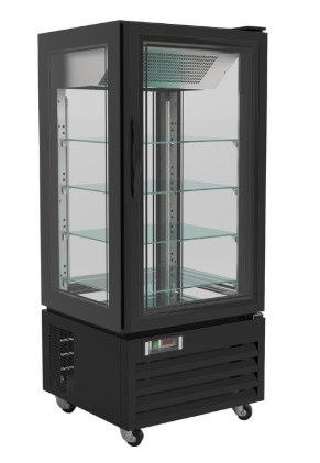 Vitrine Congelée à Patisserie |sur Roues | Noire | 280 Litres | 650x650x(H)1500mm