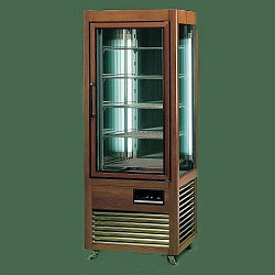 Vitrine exposition positive 4 faces vitrées |Cadre bois massif | 500 litres | 6 plateaux tournants | 70x73x(h)183cm