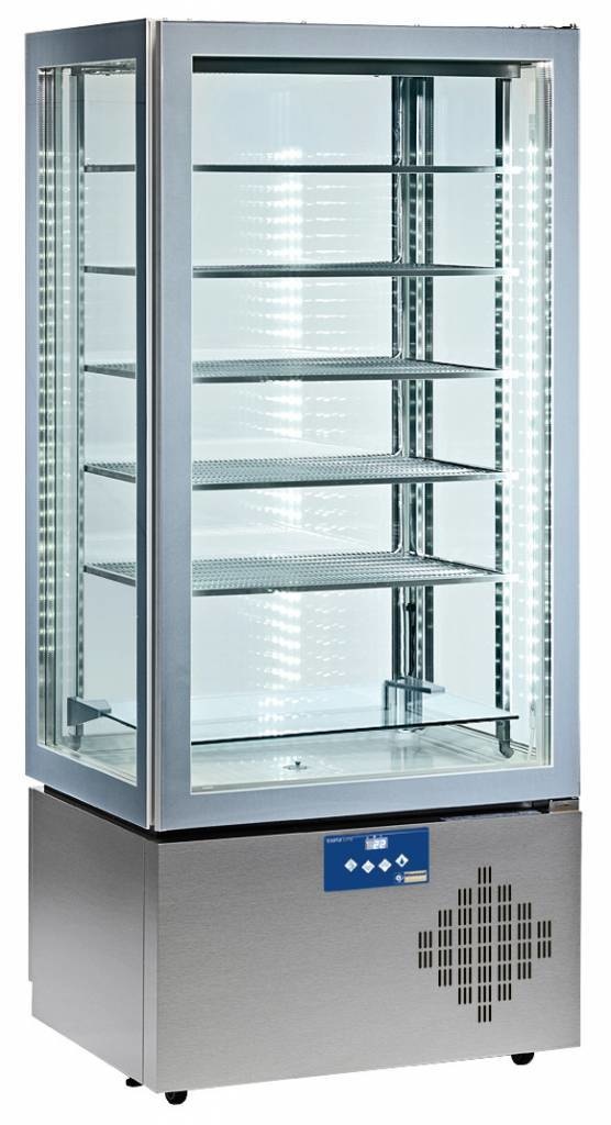 Réfrigération statique, 5 grilles avec évaporateur intégré (H.R : 75%) + étagère en verre (700x470 mm) sur crémaillères en acier inox AISI 304 (charge max 12kg/étagère).