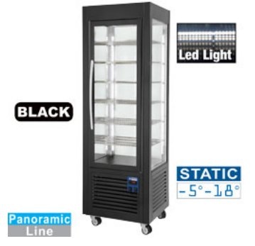 Vitrine panoramique | NOIR| 360 litres | 5 grilles sur roues | 600x630xh1850mm