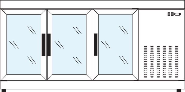 Vitrine Pâtisserie Comptoir | INOX | 3 Portes Vitrées (Avant-Arrière) | +10°/-5°C | 1780x550x(h)885mm