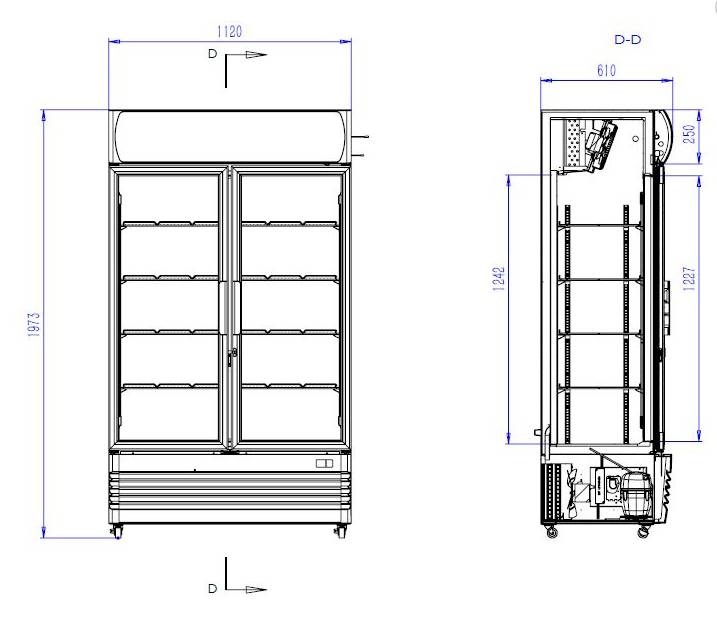 Vitrine Réfrigérée | 2 Portes | Statique avec Ventilateur | 670 Litres | 1120x610x(h)1973mm