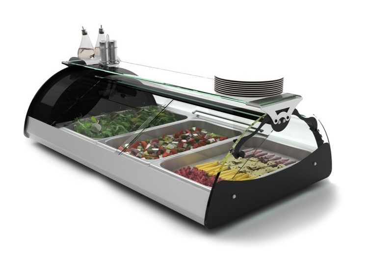 - Vitrine avec devant et ouverture derrière, idéale pour le libre service ou le double service.