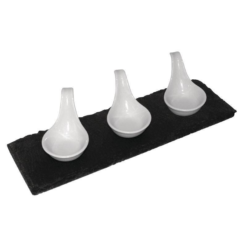 Traitée pour éviter l'absorption des odeursRésiste à l'huileLavage à la main uniquementNe pas plonger dans l'eauNombre de Pièces 4Dimensions 300(L) x 100(P)mmMatériel Ardoise naturelle- Traitée pour éviter l'absorption des odeurs