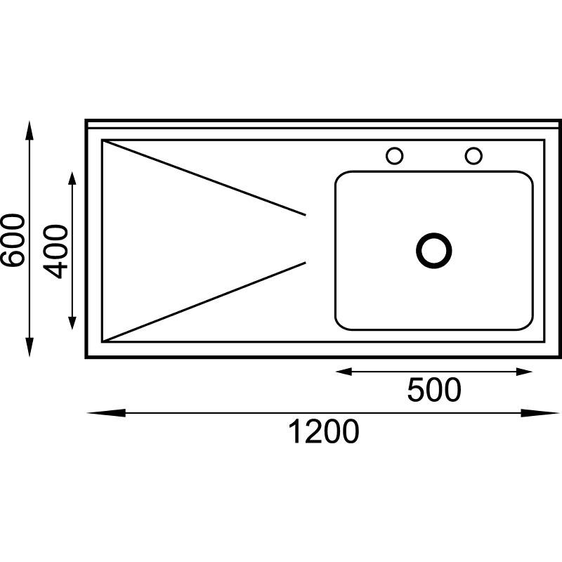 Evier Inox - 1 Bac à Droite - 1200x600x900(h)mm