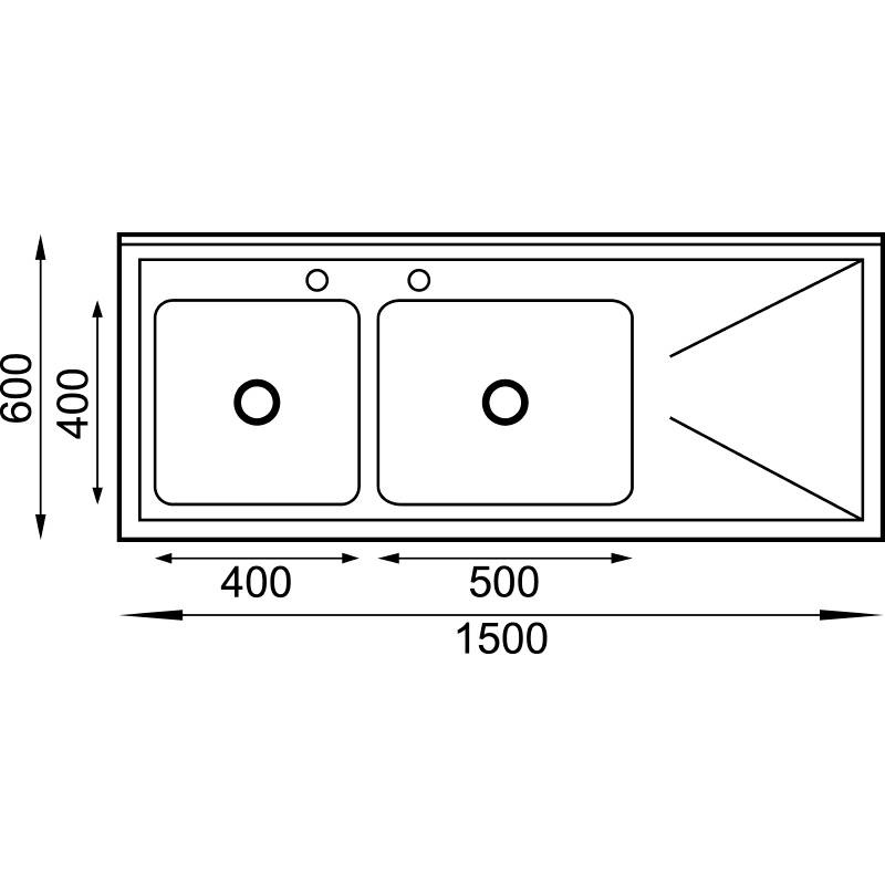 Evier Inox Double - 2 Bacs à Gauche - 1500(L)x600(l)x900(h)mm