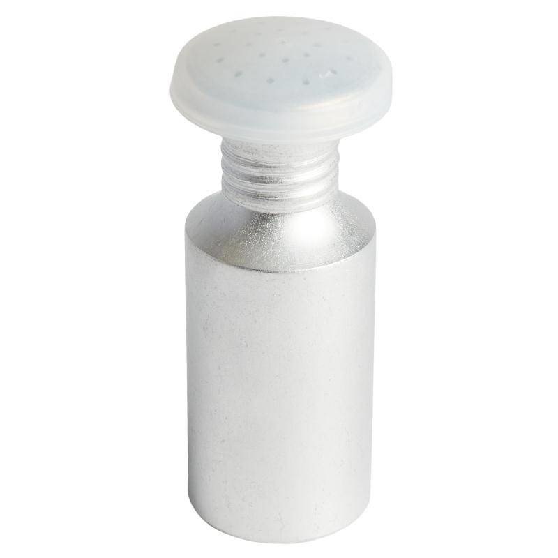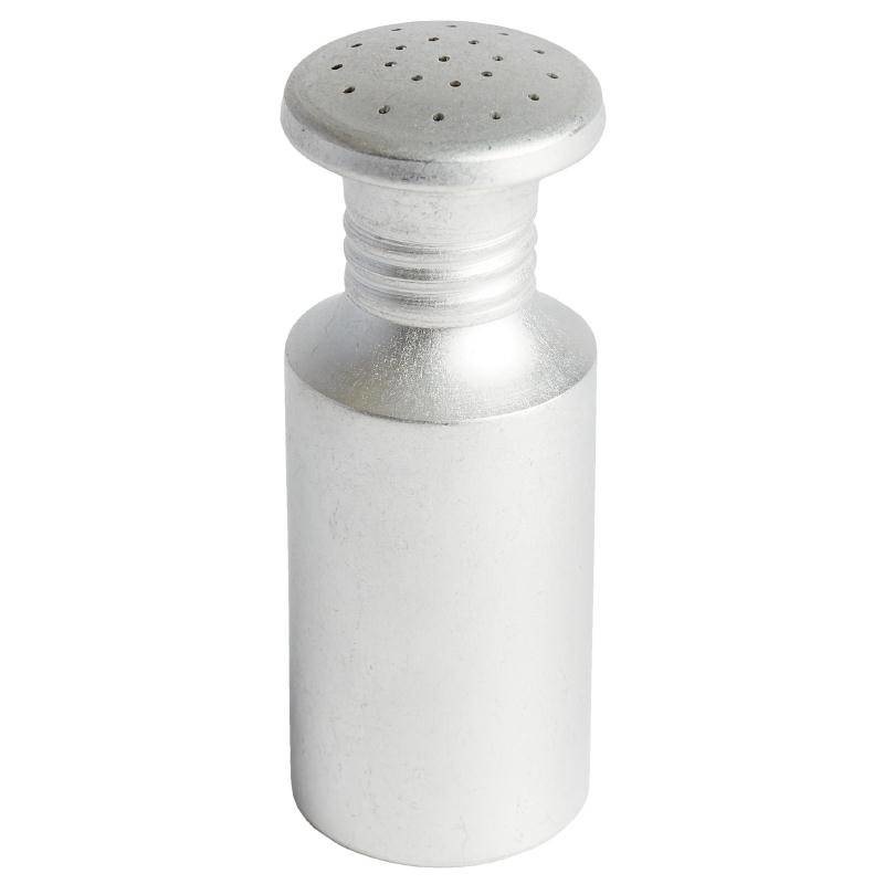 Mini salière en aluminium de 10cm. Pour apporter un design rétro à votre table. Facile à remplir grâce au bouchon à vis.