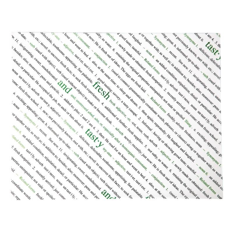 Motif texte moderneParfait pour les établissements de restauration rapide ou présentation d'aliments bistro dans les restaurantsNombre de Pièces 500Dimensions 255 x 203mmPoids - textile 41g/m²- Motif texte moderne