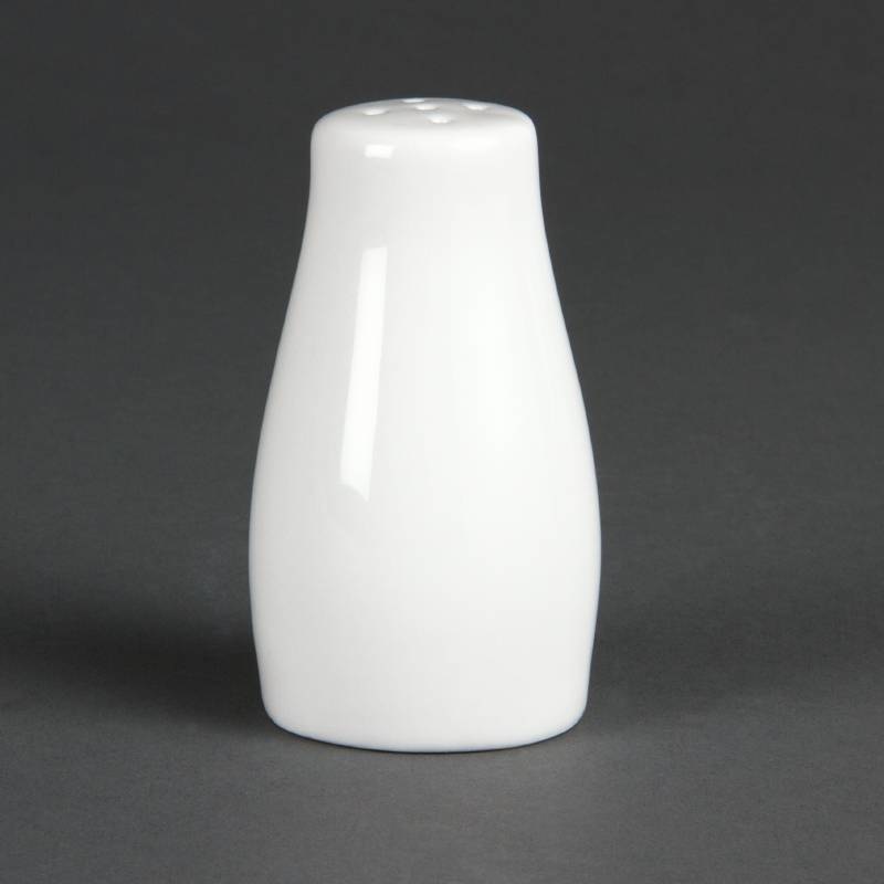 Poivrière en porcelaine blanche d'excellent rapport qualité / prix pour les besoins quotidiens de la restauration, (lavable au lave-vaisselle).