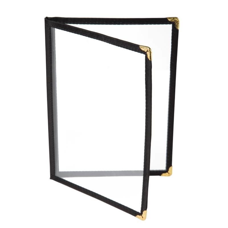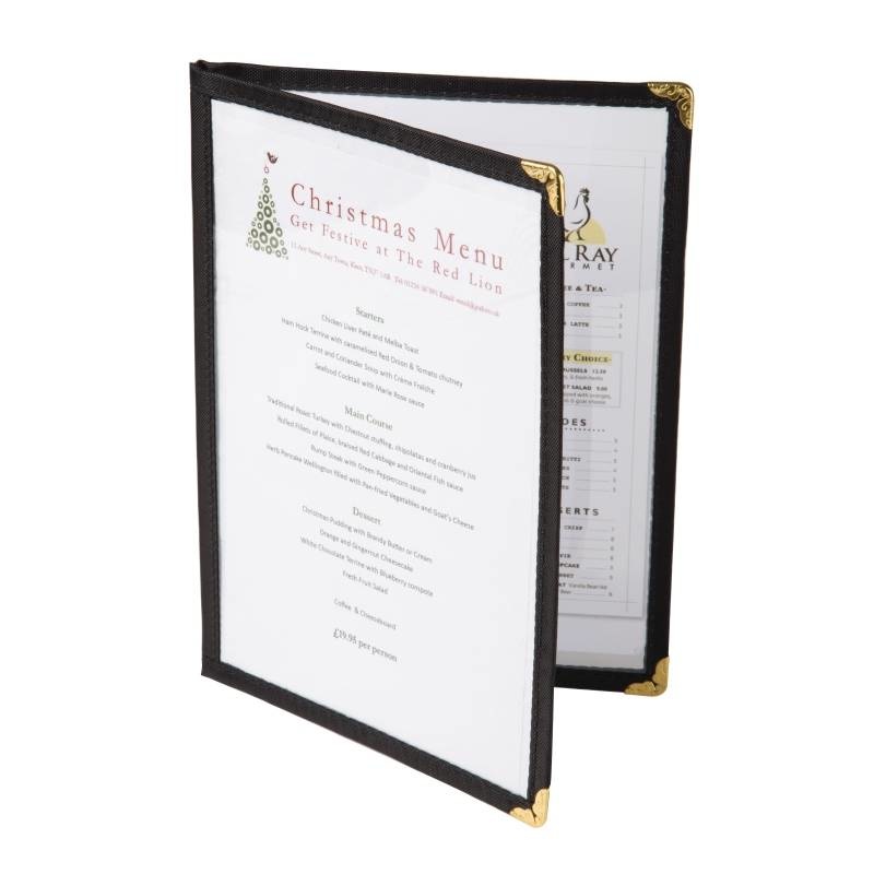 - Le menu s'insère dans la pochette plastique (2x 2 feuilles dos à dos - 4 vues). Menu non compris.