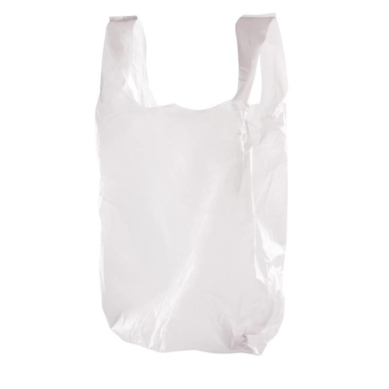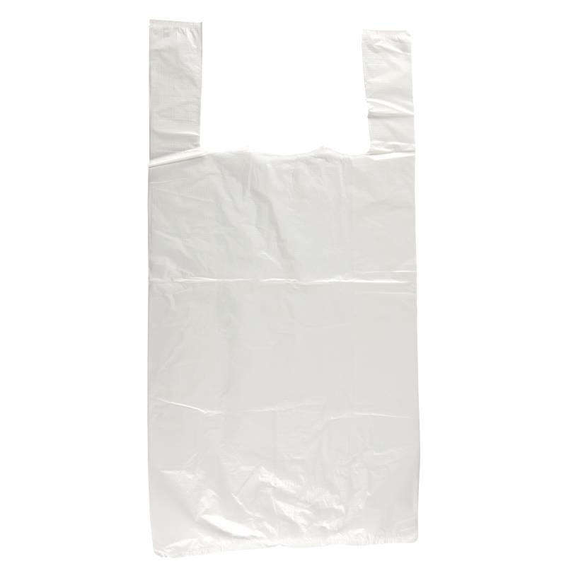 Grands sacs en plastique blancs, parfaits pour la vente à emporter.
