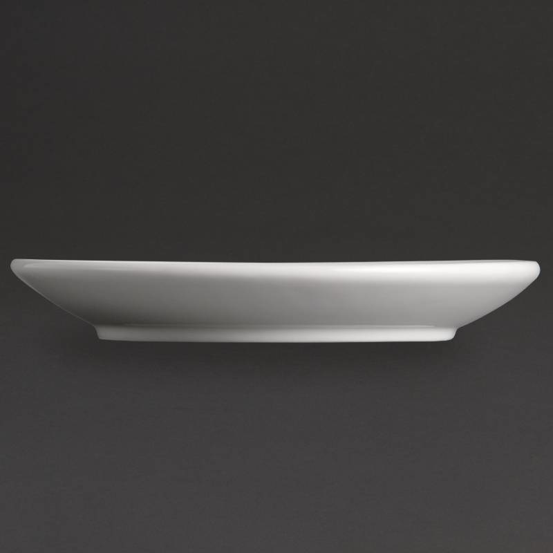 Porcelaine blanche d'hôtellerie d'excellent rapport qualité/prix. Articles multifonctions empilables avec des bords roulés renforcés pour résister aux éclats. Entièrement vitrifiée pour résister à la chaleur et aux chocs et une durabilité du vernis garantie. Four, micro-ondes, lave-vaisselle.